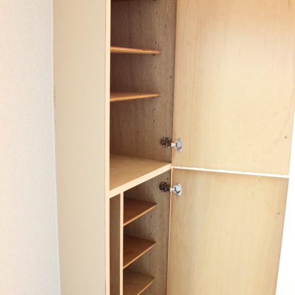 9段ある大きなシューズボックスは可動式です。ロングブーツやレインブーツも入りますよ。